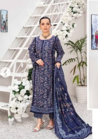 Printed lawn with heavy embroidery unsatich 3pc