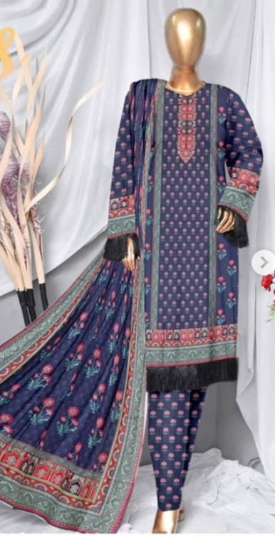 Woman's Stitched Mirror Work Printed Shirt and Trouser