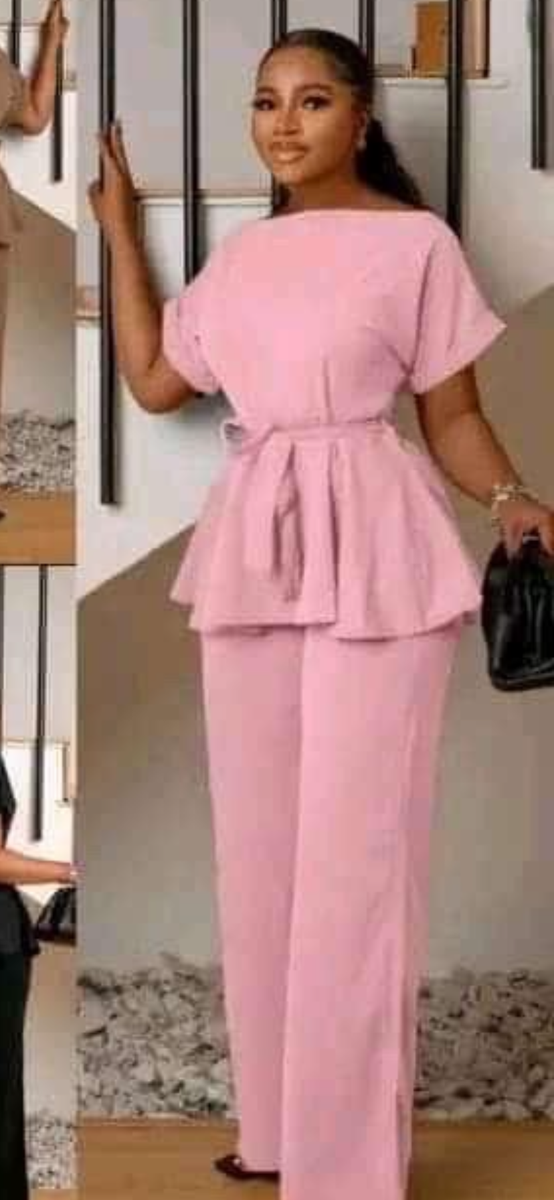 Ensemble deux pièces pour femme, haut à volants et pantalon assorti. Confectionné dans une matière confortable. Élégant et chic, parfait pour des occasions spéciales ou décontractées.