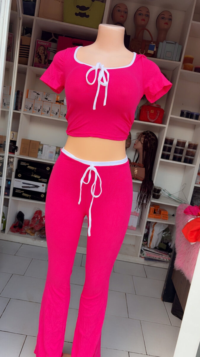 Ensemble vibrant et confortable pour femme, idéal pour le quotidien ou le sport. Haut court avec nœud élégant et pantalon taille haute. Tissu doux, parfait pour rester à la mode tout en étant à l'aise. Portez-le à la maison ou lors de vos sorties décontractées pour un style unique et dynamique.