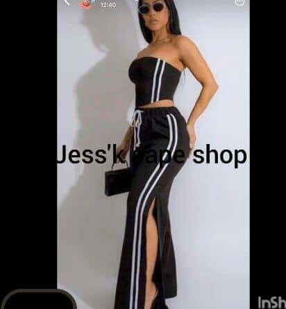 Cet ensemble noir à rayures blanches offre une allure chic et sportive. Composé d'un haut bandeau et d'une jupe fendue, il est parfait pour les sorties décontractées ou les soirées entre amis. Confortable et stylé, il s’adapte à toutes les morphologies. Idéal pour afficher une silhouette élancée.