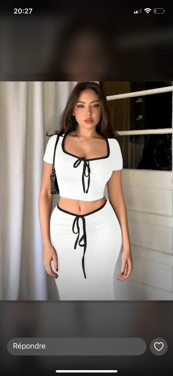 Découvrez cet ensemble féminin chic, parfait pour un look moderne et raffiné. Conçu dans un tissu confortable, il se compose d'un top court et d'une jupe taille haute, idéal pour les soirées ou sorties décontractées. Sa couleur blanche éclatante et ses détails soignés en font un choix de premier ordre pour celles qui souhaitent se démarquer avec élégance.