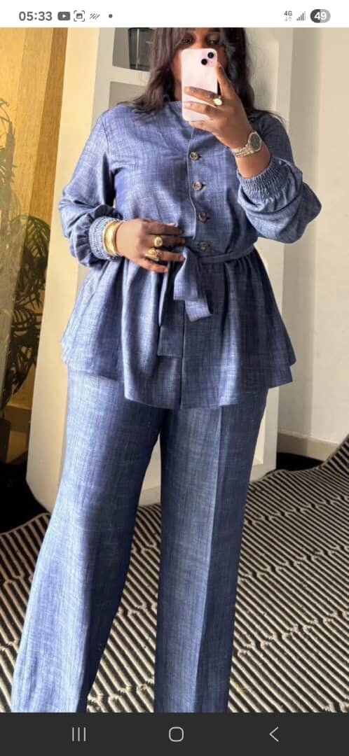 Ensemble Élégant en Lin Bleu