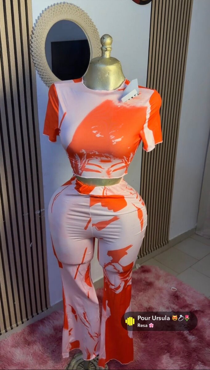 Découvrez cet ensemble vibrant et stylé parfait pour les sorties décontractées ou les événements tendance. Conçu avec un imprimé accrocheur orange et blanc, ce set offre confort et style grâce à son matériau doux et flexible. Idéal pour mettre en valeur votre silhouette avec sa coupe ajustée.