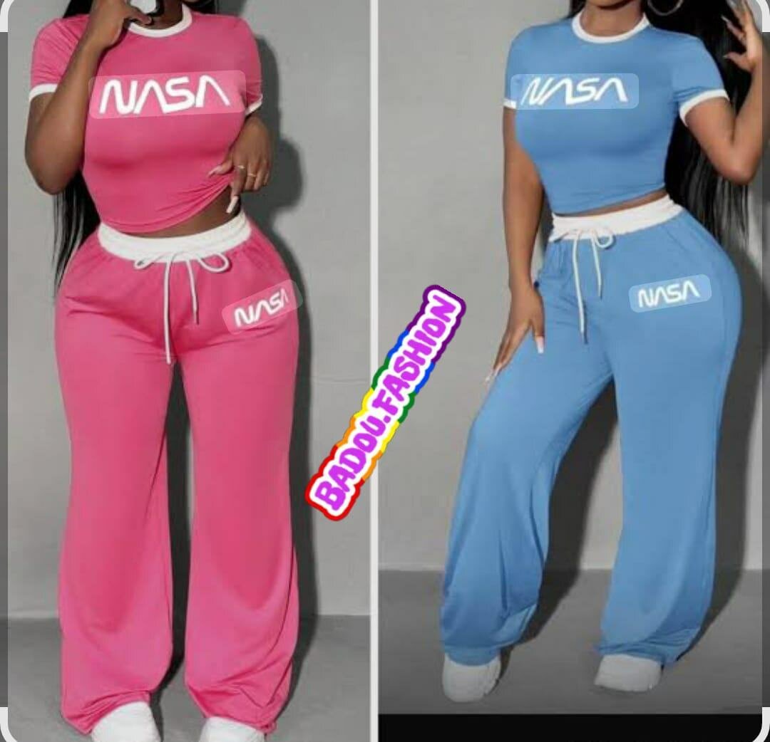 Découvrez cet ensemble deux pièces inspiré de la NASA, alliant style et confort. Parfait pour les femmes actives, ce design tendance avec le logo emblématique est idéal pour le sport ou les sorties décontractées. Disponible en rose et bleu, il assure un look moderne tout en étant confortable.