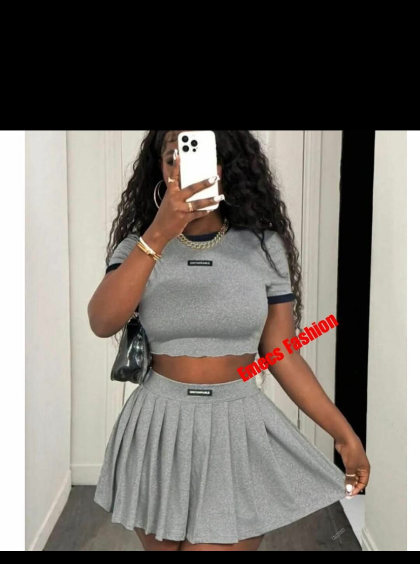Découvrez cet ensemble femme inspiré du tennis, composé d'un crop-top et d'une jupe plissée. Parfait pour un look à la fois sportif et tendance, ce set est idéal pour les sorties entre amis ou les occasions décontractées. Fabriqué avec des matériaux confortables, il souligne élégamment votre silhouette tout en offrant un style unique.