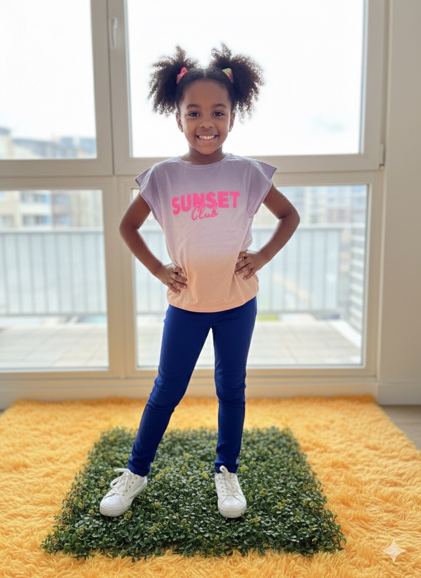 Craquez pour cet ensemble tendance "Sunset Club" pour fille de 10 ans ! Composé d'un haut imprimé moderne et d'un pantalon confortable, il est idéal pour un look à la fois stylé et décontracté. Parfait pour la rentrée ou des sorties en famille. Offrez-lui ce duo mode et pratique !