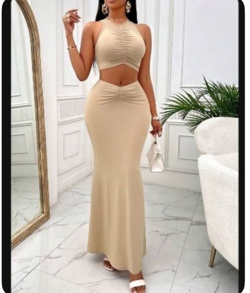 Ce magnifique ensemble deux pièces, avec motifs floraux délicats, est parfait pour des sorties estivales. Conçu pour mettre en valeur la silhouette avec son haut dos nu et sa jupe longue. Idéal pour les occasions spéciales, cet ensemble offre confort et élégance.