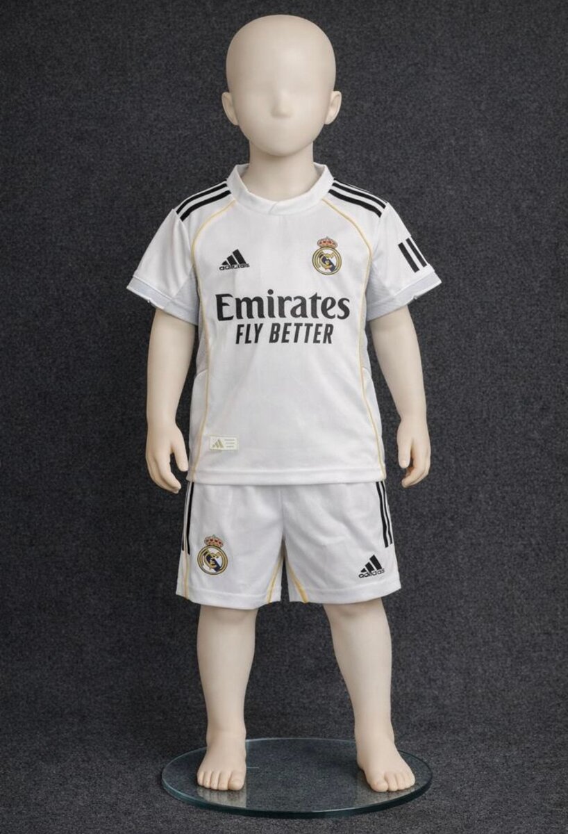 Découvrez cet ensemble de football comprenant un maillot et un short aux couleurs du Real Madrid, conçu pour les jeunes supporters. Fabriqué avec des matériaux de qualité, cet ensemble est idéal pour les matchs ou les entraînements.
