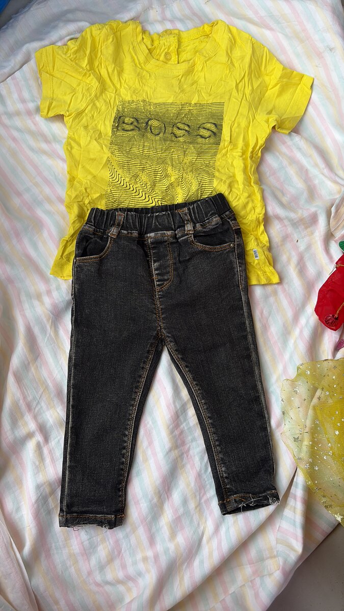 Optez pour cet ensemble stylé et confortable pour enfants, parfait pour jouer ou se détendre. T-shirts en coton doux avec motifs ludiques et pantalons assortis en denim résistant. Idéal pour toutes les occasions!