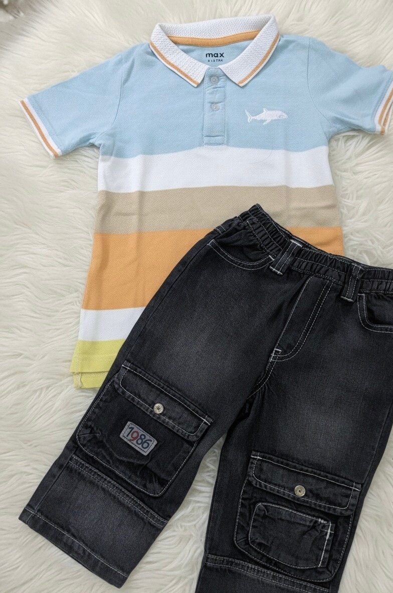 Cet ensemble stylé pour garçon inclut un polo rayé et un pantalon cargo. Parfait pour les sorties décontractées ou l'école, il offre un confort optimal et un style moderne. Le polo est léger et coloré, tandis que le pantalon ajoute une touche pratique avec ses poches multiples.