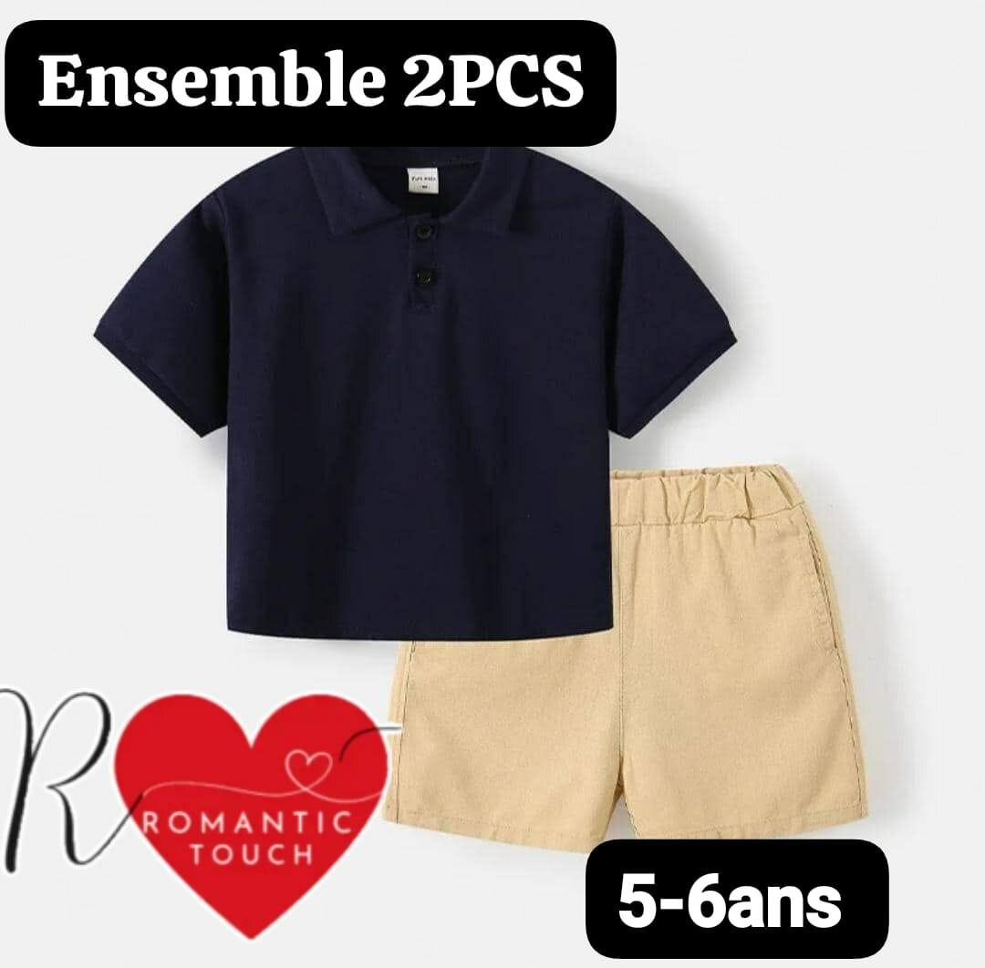 Optez pour cet ensemble deux pièces pour garçons, idéal pour les 5-6ans. Composé d'un polo bleu marine et d'un short beige, il offre confort et style pour toutes les occasions. Parfait pour les sorties estivales et activités décontractées.