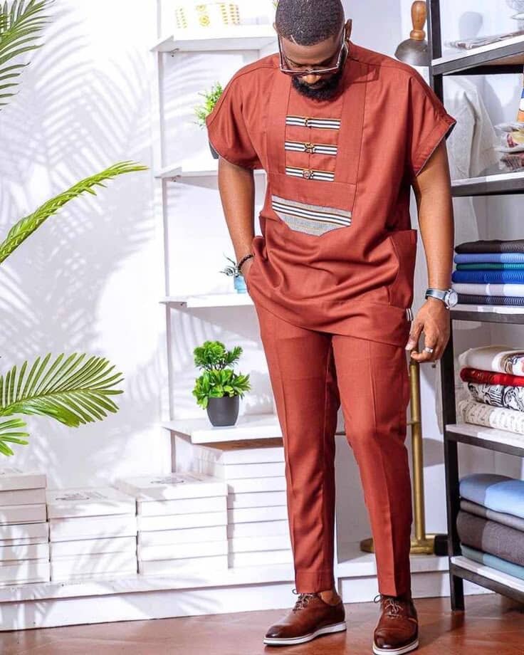 Ensemble homme africain Dashiki en coton,conçu pour les hommes élégants. Confortable et tendance, cet ensemble de vêtements est idéal pour des occasions spéciales ou des événements culturels.