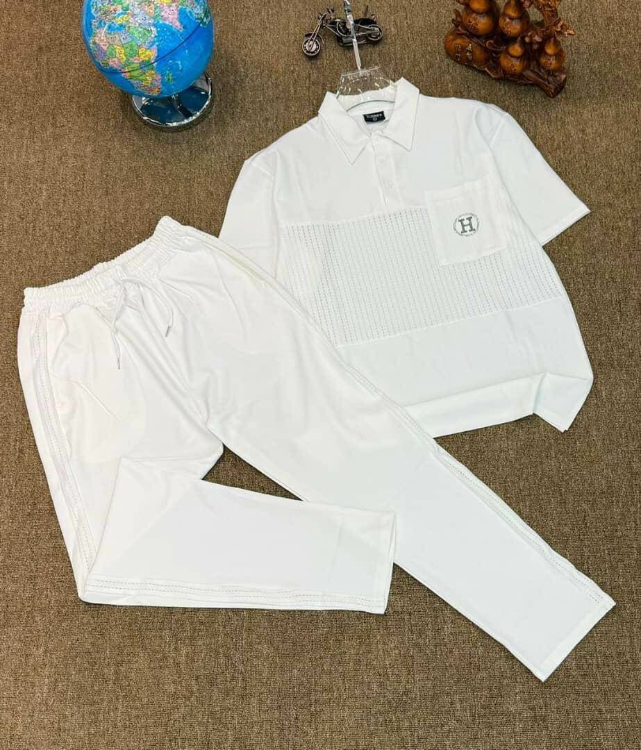 Ensemble homme élégant et confortable composé d'un polo et d'un pantalon blanc. Idéal pour les occasions décontractées ou sportives. Conçu pour un look moderne.