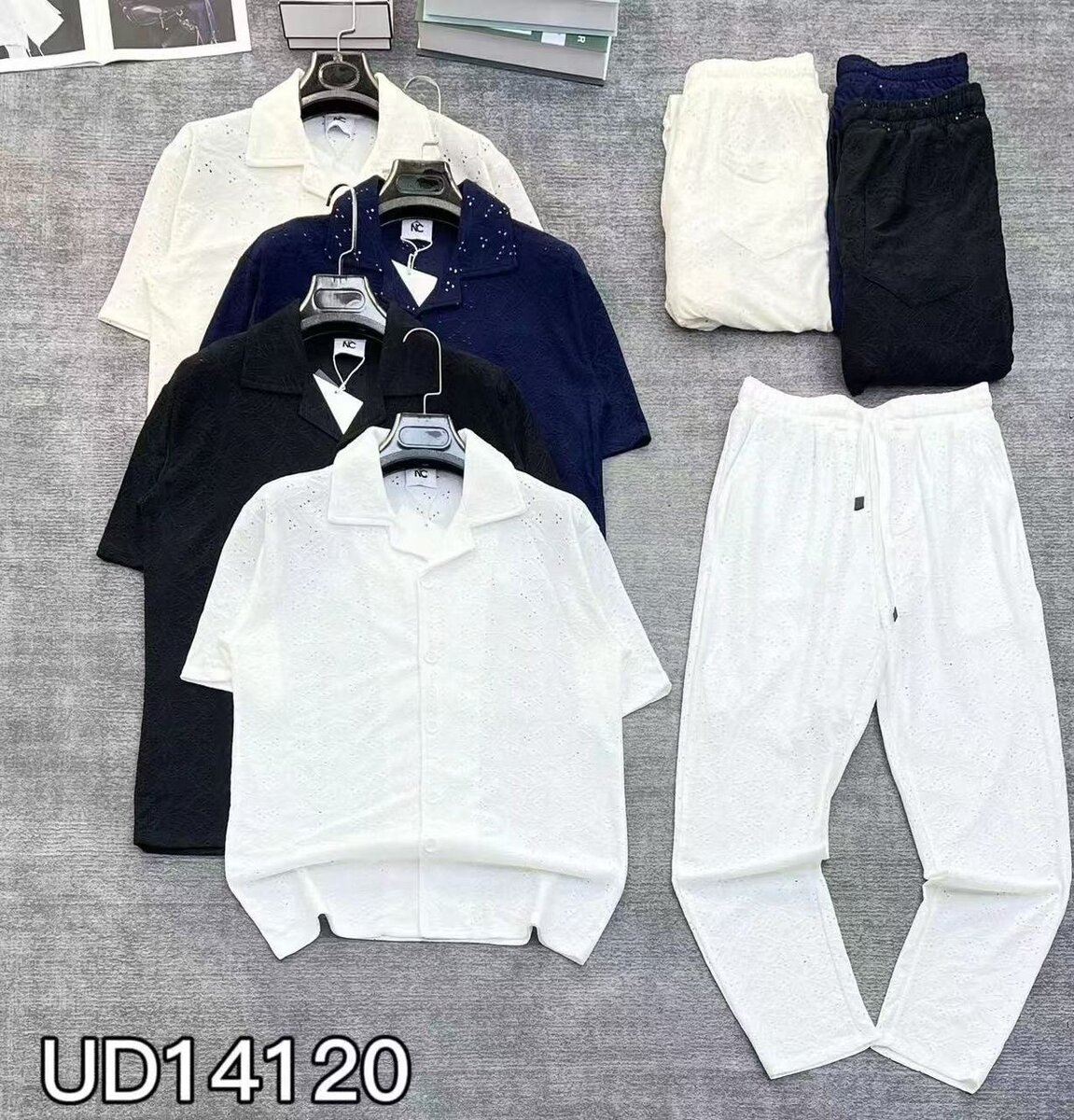 Ensemble décontracté pour homme composé d'une chemise élégante et d'un pantalon confortable. Idéal pour un look chic et relax au quotidien. Disponible en plusieurs coloris.