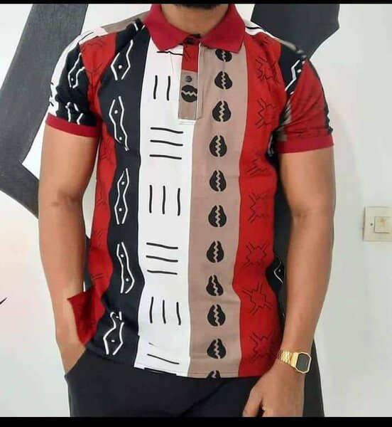 Ensemble mode homme composé d'un T-shirt et d'un short coordonnés, motif chevron multicolore sur fond blanc. Confortable et élégant, idéal pour les activités décontractées ou les vacances.