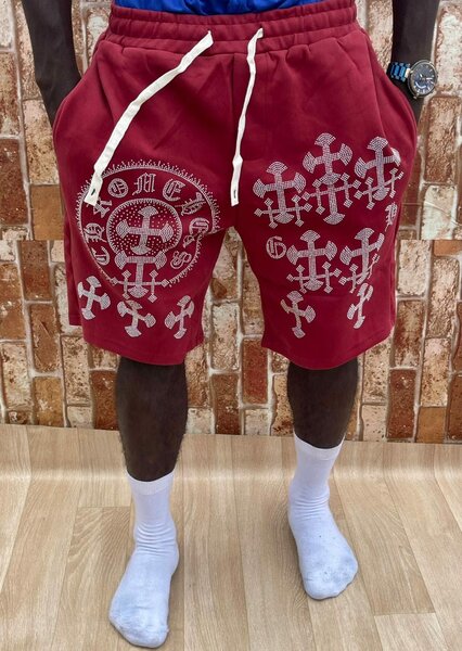 Ensemble homme rouge comprenant une chemise avec motif bandana et short avec écriture 'black off'. Confortable et élégant, idéal pour les journées décontractées ou les sorties en ville.