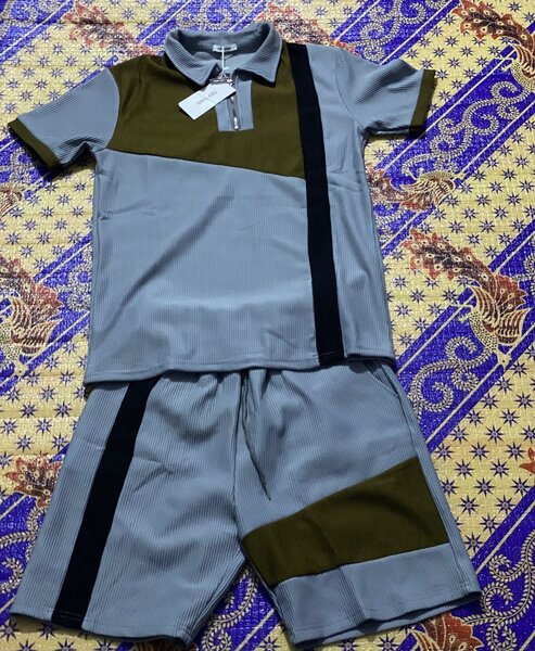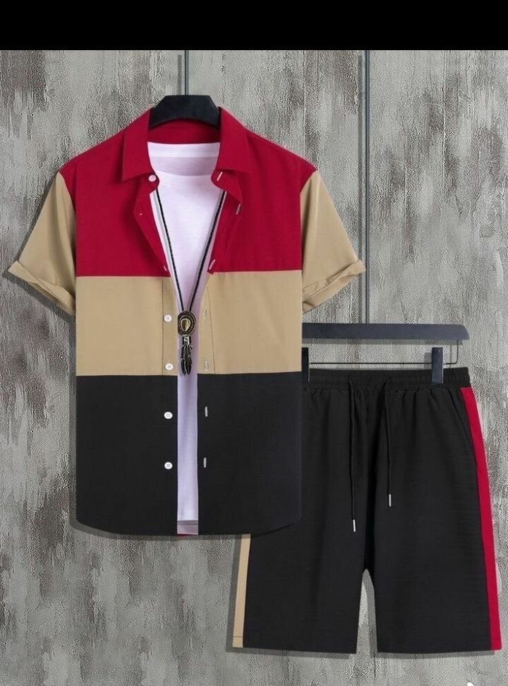 Ensemble homme comprenant une chemise à manches courtes et un short coordonné. Conçu pour un style décontracté et moderne. Idéal pour les journées chaudes et les activités en plein air.