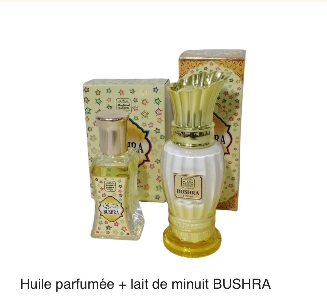 Découvrez l'ensemble Huile Parfumée Bushra, une harmonie olfactive pour des soirées enchantées. Ce duo comprend une huile parfumée et un lait de minuit, parfait pour une touche de luxe dans votre routine nocturne. Offrez-vous un moment de détente et de pure indulgence.