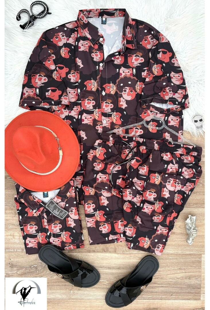 Élevez votre style avec cet ensemble audacieux orné d'un motif de visages artistiques. Idéal pour les sorties décontractées ou les événements estivaux, sa composition légère garantit confort et respirabilité. Associez-le à des accessoires colorés pour un look tendance et unique. Parfait pour l'homme moderne à la recherche d'une allure originale.
