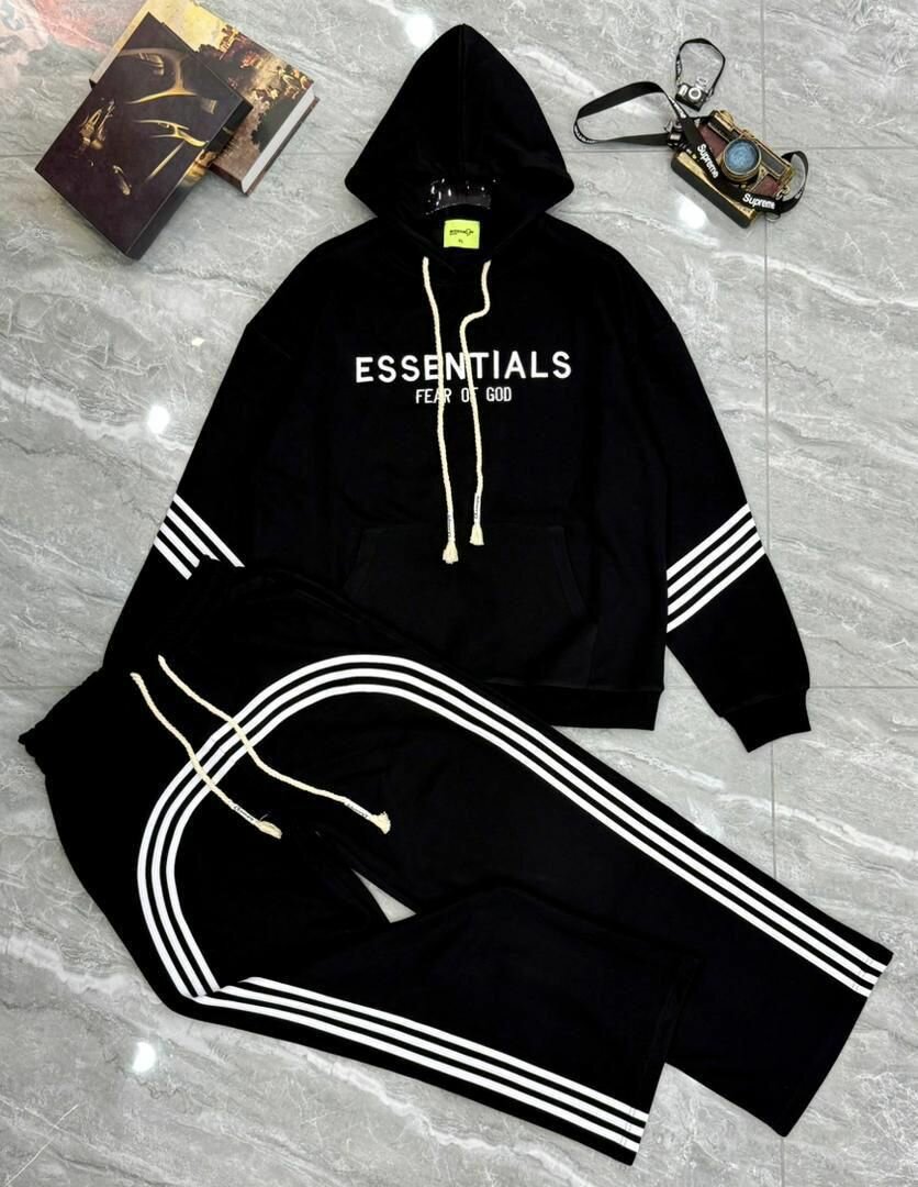 Profitez du confort et du style avec cet ensemble jogging Essentials. Idéal pour les journées décontractées, il offre un design moderne avec des bandes latérales élégantes. Parfait pour la détente ou le sport, cet ensemble est un incontournable pour votre garde-robe casual.