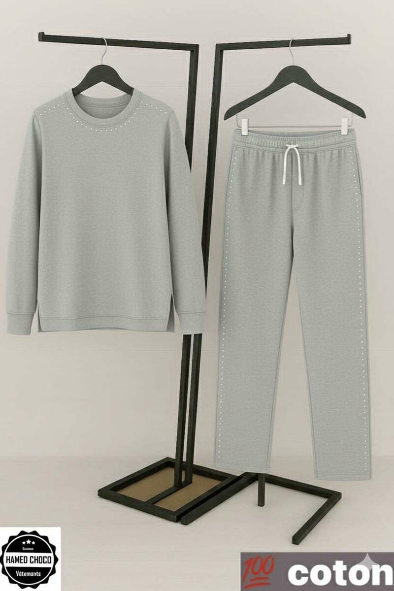 Découvrez cet ensemble jogging en coton gris, parfait pour un confort quotidien. Avec sa coupe moderne et ses matériaux doux, il est idéal pour se détendre à la maison ou pour vos sorties décontractées. Le choix parfait pour allier style et confort.