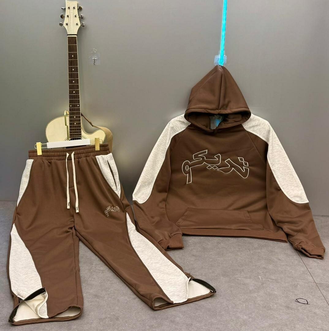 Complétez votre garde-robe avec cet ensemble de jogging marron à manches contrastées. Parfait pour un look décontracté, cet ensemble offre confort et style au quotidien.