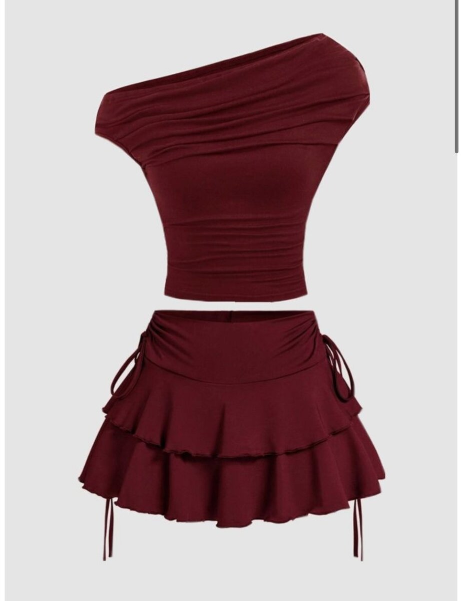 Optez pour cet ensemble tendance et féminin. Le haut à épaules dénudées apportera une touche de glamour, tandis que la jupe à volants ajoutera du mouvement. Parfait pour les sorties estivales ou les occasions spéciales. Confortable et chic, c'est un choix idéal pour celles qui aiment se démarquer avec élégance.