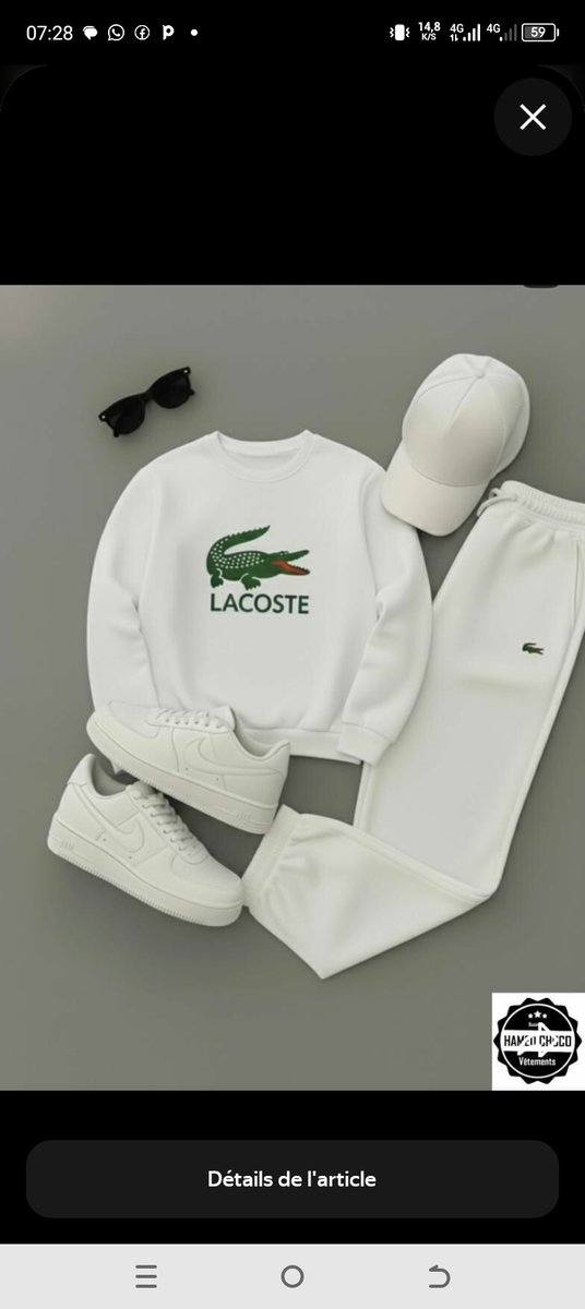 Découvrez cet ensemble Lacoste Blanc, idéal pour un look à la fois décontracté et élégant. Composé d'un sweat à logo emblématique, d'un pantalon assorti et d'une casquette, ce set est parfait pour toutes vos activités quotidiennes. Confort et style garantis!