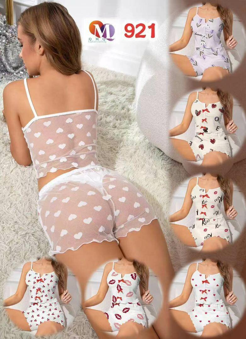 Offrez-vous un ensemble de lingerie séduisante et confortable. Fabriqué en tissu léger avec des imprimés coquins, cet ensemble est parfait pour une soirée spéciale ou une nuit relaxante à la maison. Disponible en plusieurs motifs.
