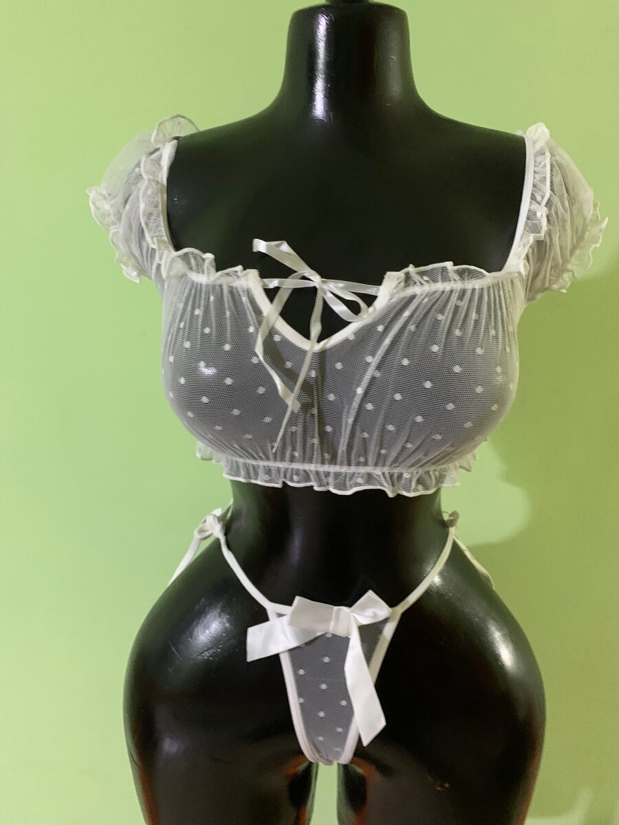 Découvrez l'élégance de cet ensemble lingerie en dentelle blanche. Avec ses motifs à pois délicats et ses rubans satinés, il est idéal pour des occasions spéciales. Confortable et séduisant, ce set apportera une touche de glamour à votre garde-robe. Parfait pour pimenter vos moments intimes.