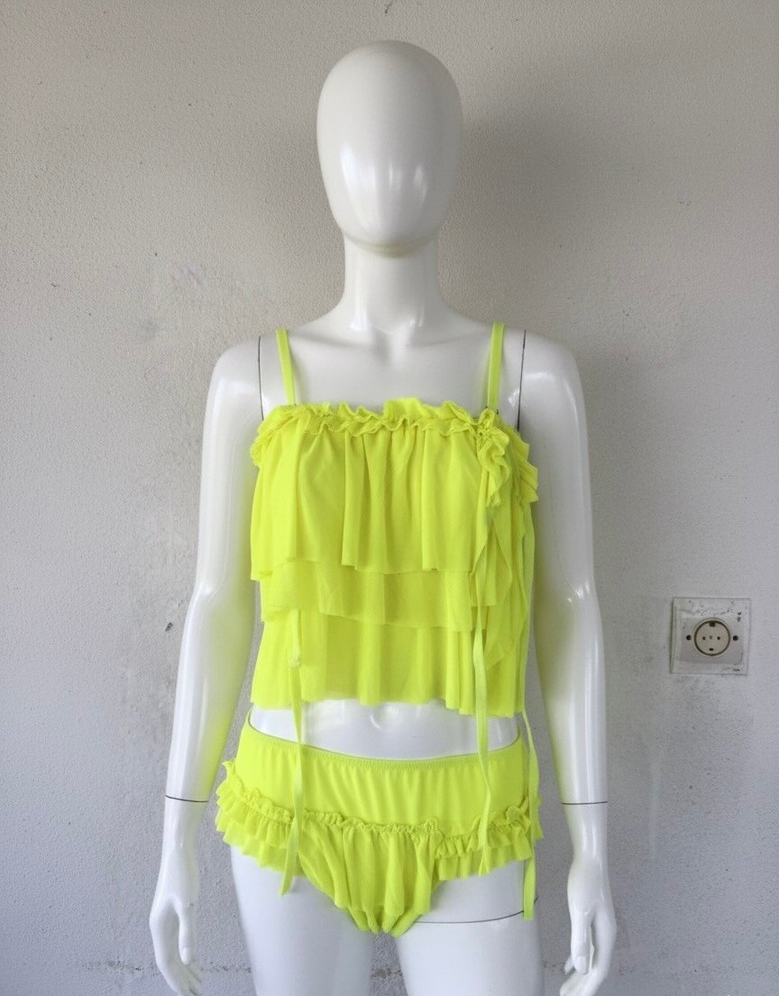 Optez pour cet ensemble de lingerie jaune fluo irrésistible, parfait pour ajouter une touche de couleur vive à votre garde-robe. Fabriqué avec des matériaux doux, il offre un confort et une allure incroyablement séduisante. Idéal pour celles qui souhaitent se démarquer.