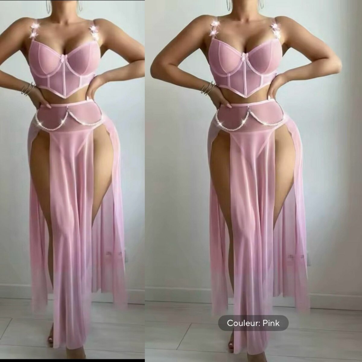 Découvrez cet ensemble lingerie rose, parfait pour se sentir séduisante et élégante. Conçu avec des détails délicats et une coupe flatteuse, il est idéal pour des soirées spéciales ou pour une touche de glamour au quotidien. Fabriqué avec des matériaux doux pour un confort optimal. Transformez vos moments intimes avec cet ensemble captivant.