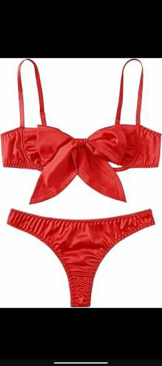 Découvrez cet ensemble lingerie rouge en satin, conçu pour séduire. Avec son nœud élégant et son tissu brillant, il est idéal pour les occasions spéciales ou romantiques. Parfait pour les femmes qui aiment la lingerie raffinée.