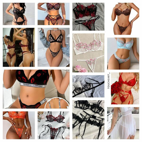 Ensemble lingerie rouge et blanc en dentelle, confortable et élégant, idéal pour les occasions spéciales ou le quotidien. Conçu pour mettre en valeur votre féminité.
