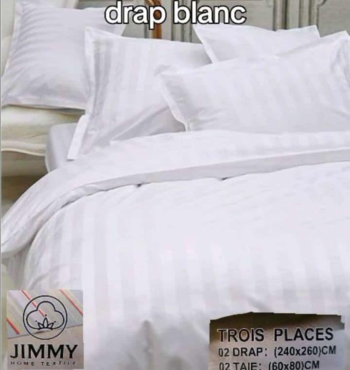 Ensemble literie 2 draps plats 3 places ( draps simples) 2 taies d'oreillers Livraison à vos frais