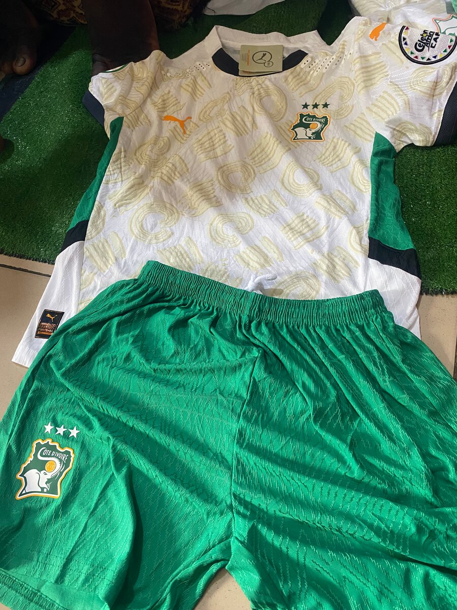 Vêtements de sport haut de gamme pour les amateurs de football. Design élégant et confortable, idéal pour les entraînements ou les matchs. Fabriqué avec des matériaux respirants et légers pour une liberté de mouvement optimale. Parfait pour soutenir votre équipe préférée avec style.