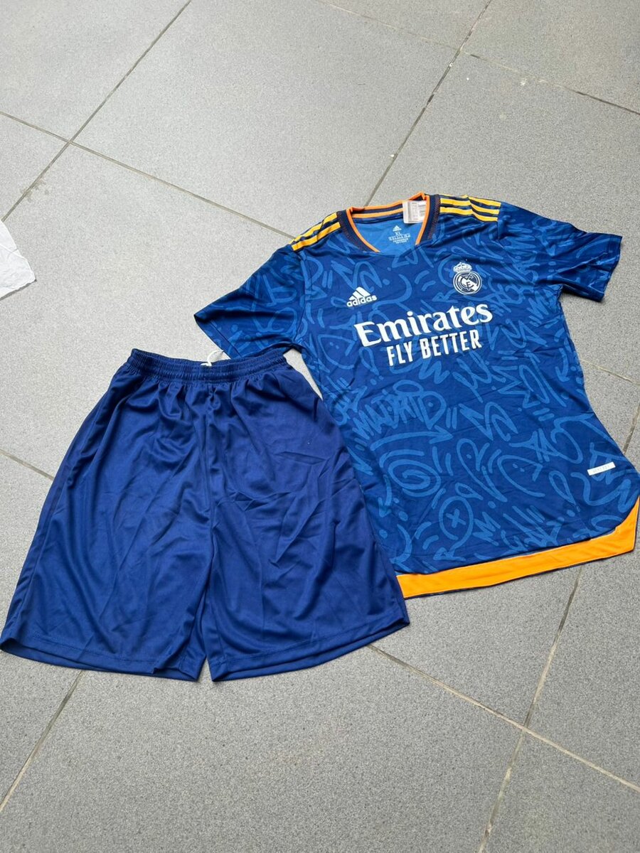 Ensemble maillot+short du real Madrid au prix exceptionnel de 9000f et disponible en stock limité.