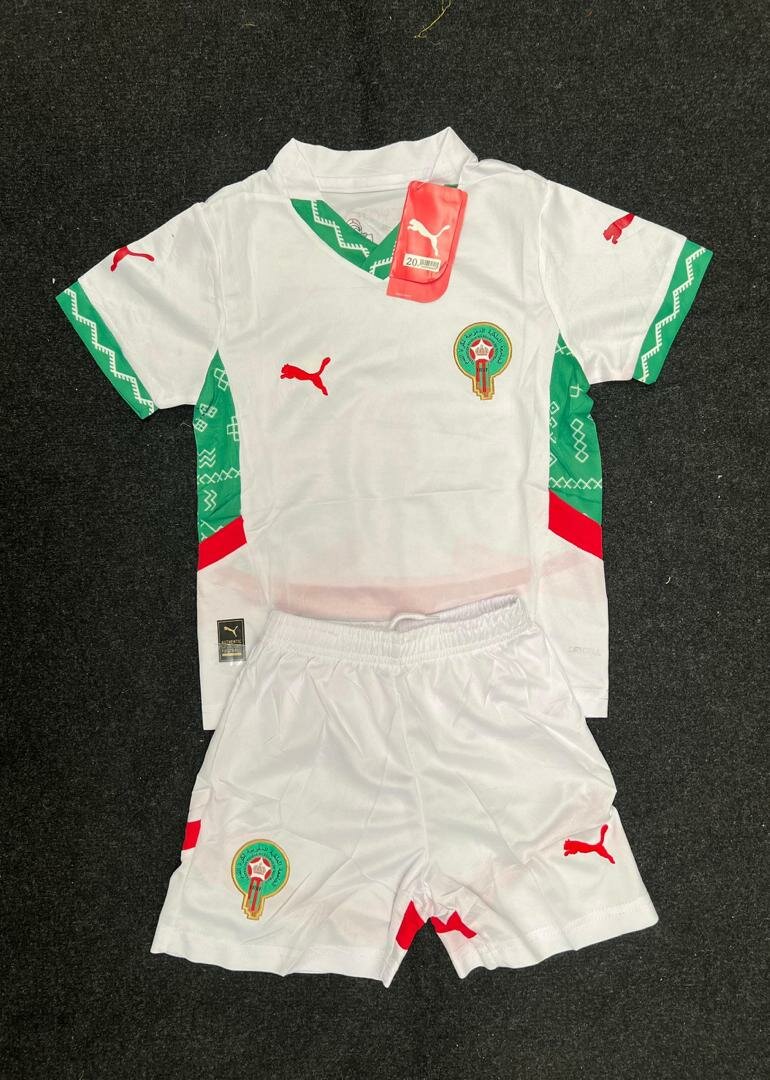 Ensemble de football pour enfant aux couleurs du Maroc. Inclut un maillot et un short en polyester de haute qualité. Idéal pour les jeunes fans de football pour jouer ou soutenir leur équipe préférée. Confort exceptionnel et design moderne avec logo emblématique.