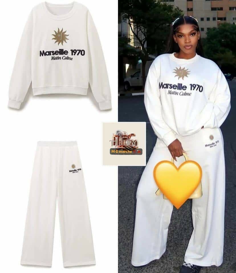 L'ensemble "Marseille 1970" blanc offre un style casual et confortable. Fabriqué en coton de qualité, il est idéal pour des journées décontractées. Parfait pour un look moderne et urbain.