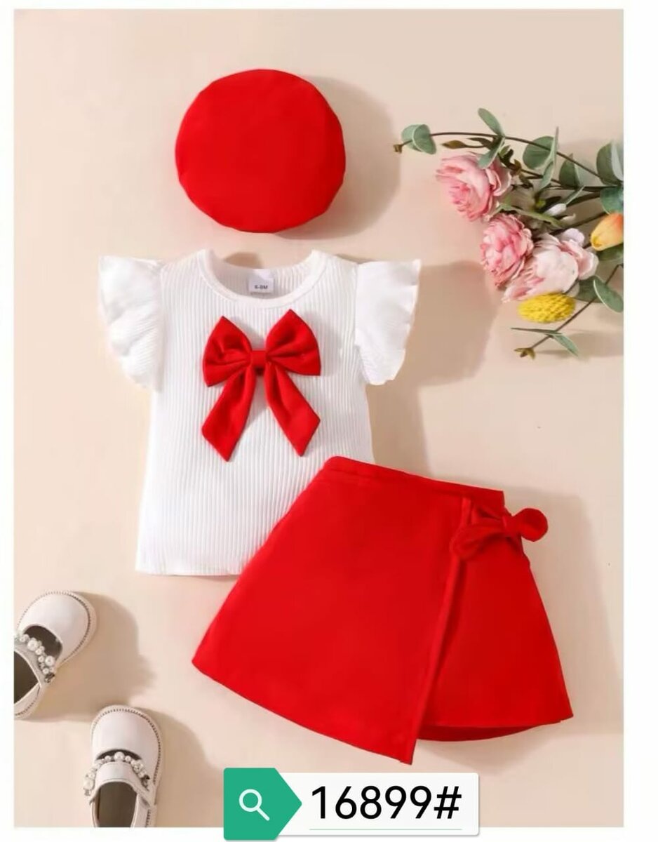 Optez pour cet ensemble adorable pour filles, comprenant un haut blanc à volants avec un noeud rouge et une jupe-culotte assortie. Parfait pour les occasions spéciales et les sorties en famille, il offre confort et élégance. Le béret inclus complète harmonieusement le look.