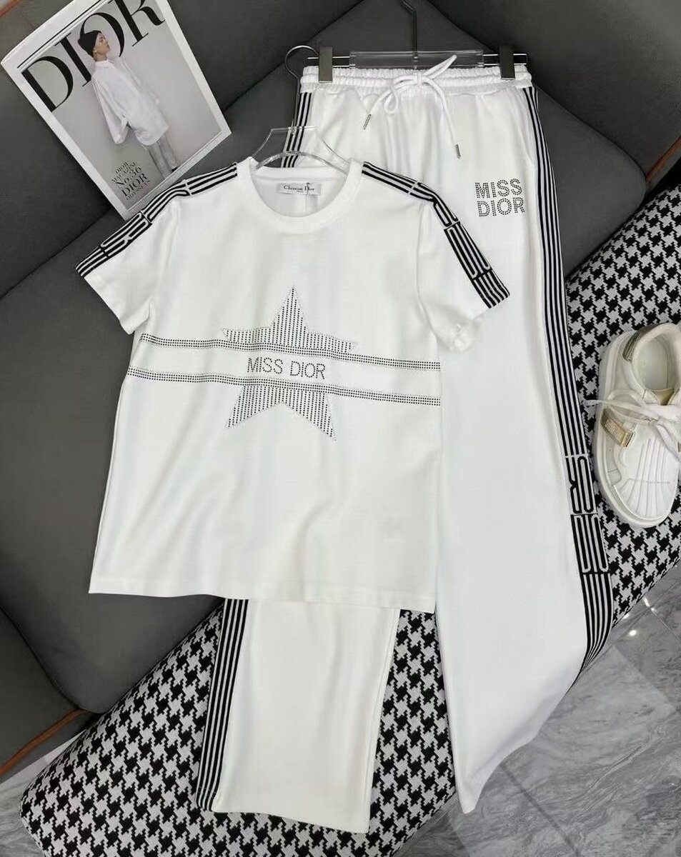 Profitez du style intemporel avec cet ensemble Miss Dior. Idéal pour un look décontracté chic, il allie confort et élégance. Conçu en matières douces, cet ensemble est parfait pour vos moments de détente à la maison ou les sorties entre amis. Un must-have pour toutes les garde-robes.