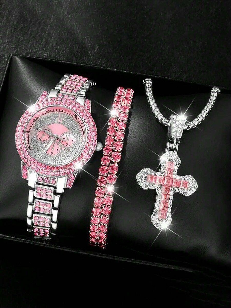 Éclairez votre style avec cet ensemble éblouissant de montre et bijoux. Doté de strass étincelants et d'un design moderne, cet ensemble est parfait pour toute occasion. Idéal pour un cadeau spécial ou pour sublimer vos tenues.
