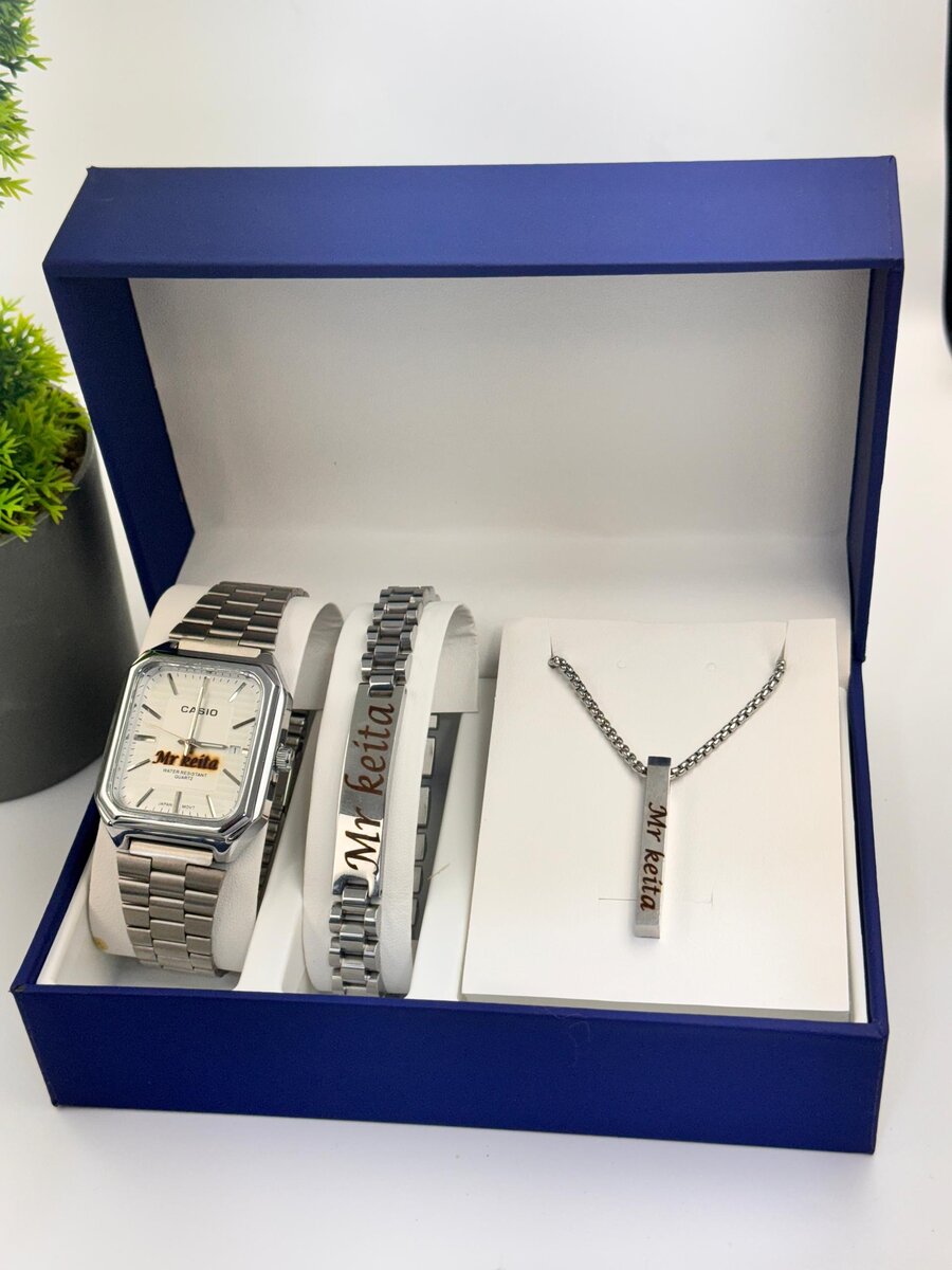Découvrez notre ensemble montre, bracelet et collier pour homme, conçu pour les hommes élégants. Livré dans une boîte cadeau, cet ensemble est parfait pour toutes les occasions.