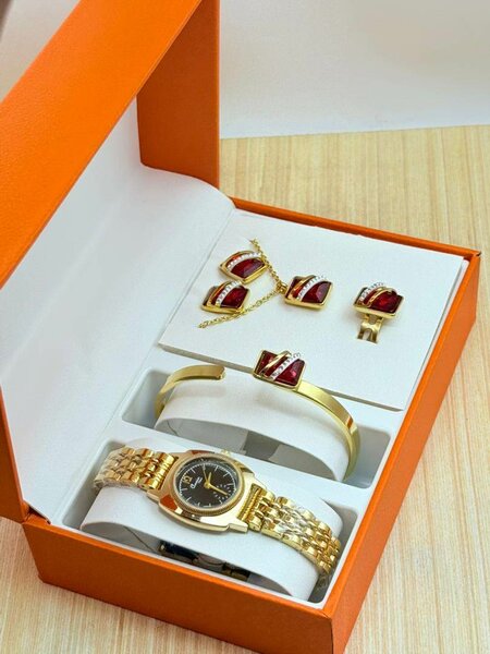 Découvrez cet ensemble élégant comprenant une montre, des boucles d'oreilles et un bracelet, livré dans une boîte cadeau raffinée. Parfait pour les occasions spéciales.
