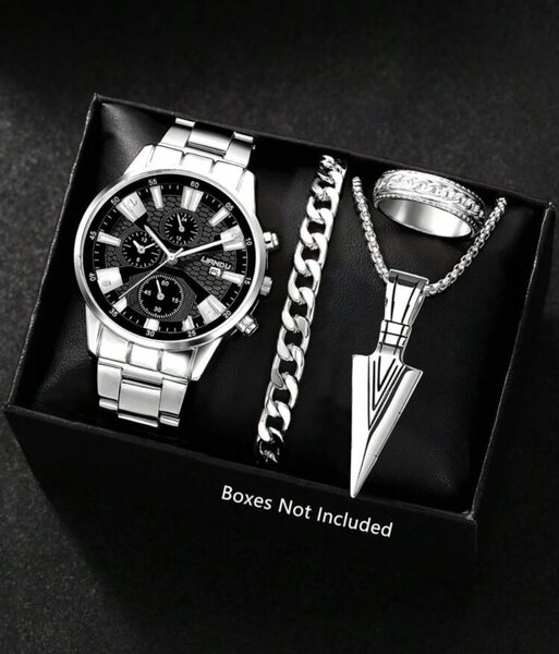 Découvrez cet ensemble élégant comprenant une montre, un bracelet et un collier pour homme. Parfait pour les amateurs de style urbain et moderne.