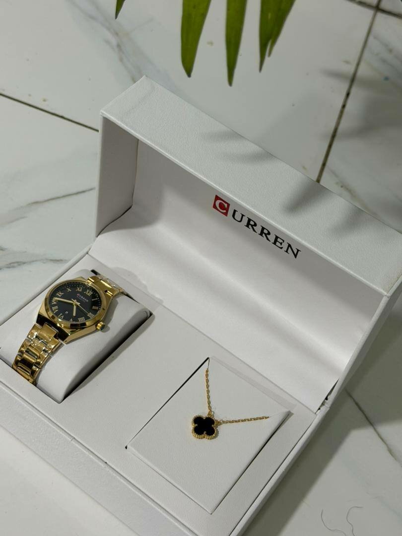 Élégant ensemble CURREN avec montre dorée et collier assorti. Parfait pour les occasions spéciales ou comme cadeau exceptionnel. Montre avec bracelet en acier inoxydable et collier raffiné avec pendentif. Ajoutez une touche de luxe à votre tenue.