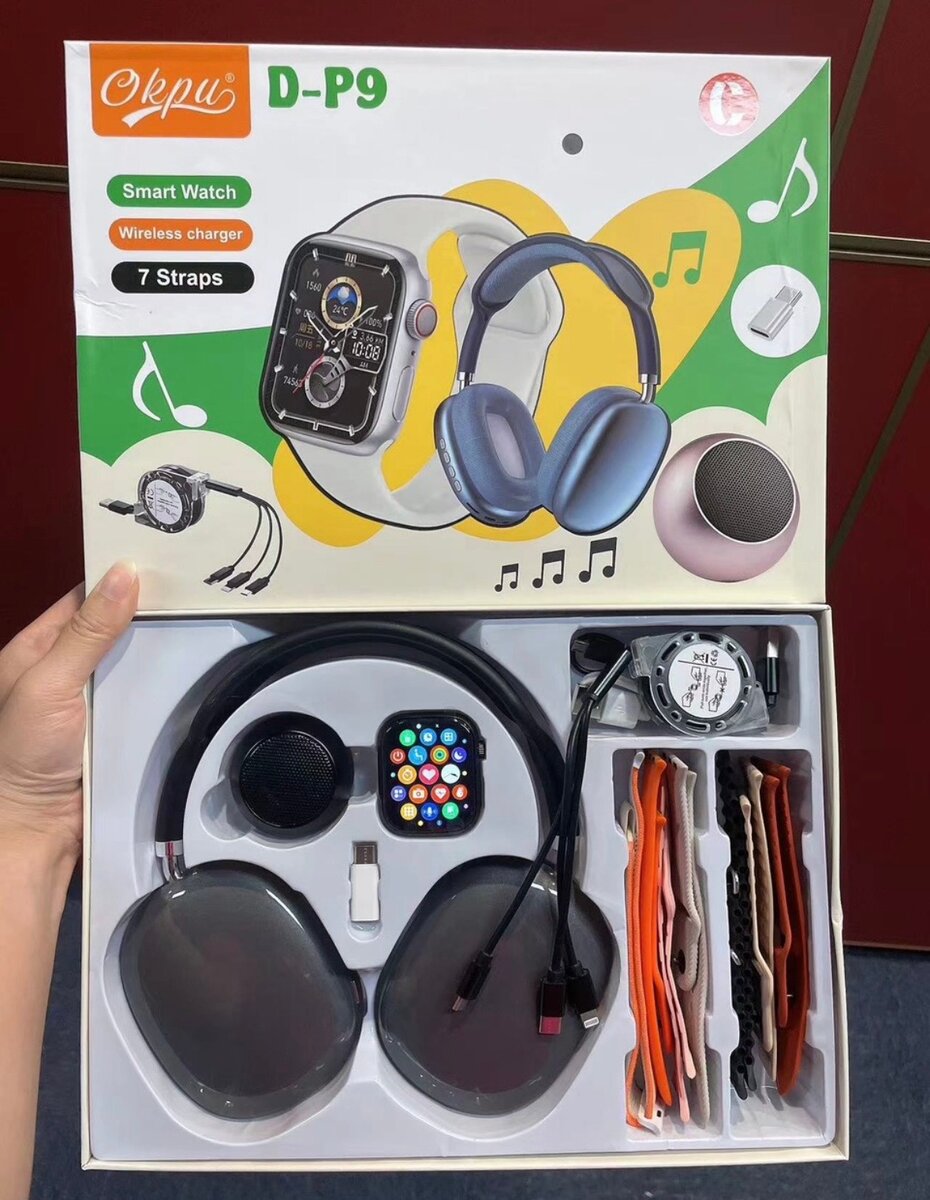 Profitez d'une expérience de luxe avec cet ensemble de montre intelligente et écouteurs sans fil D-P9. Recharge sans fil et sept bracelets inclus pour personnaliser votre style. Parfait pour les mélomanes et les amateurs de technologie moderne.