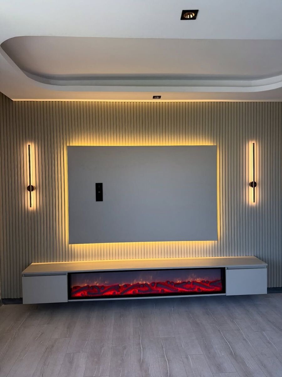 Transformez votre salon avec cet ensemble mural moderne et élégant, doté d'un système d'éclairage LED intégré et d'une imitation foyer. Idéal pour créer une ambiance chaleureuse, ce meuble allie style et fonctionnalité. Parfait pour les amateurs de design contemporain.