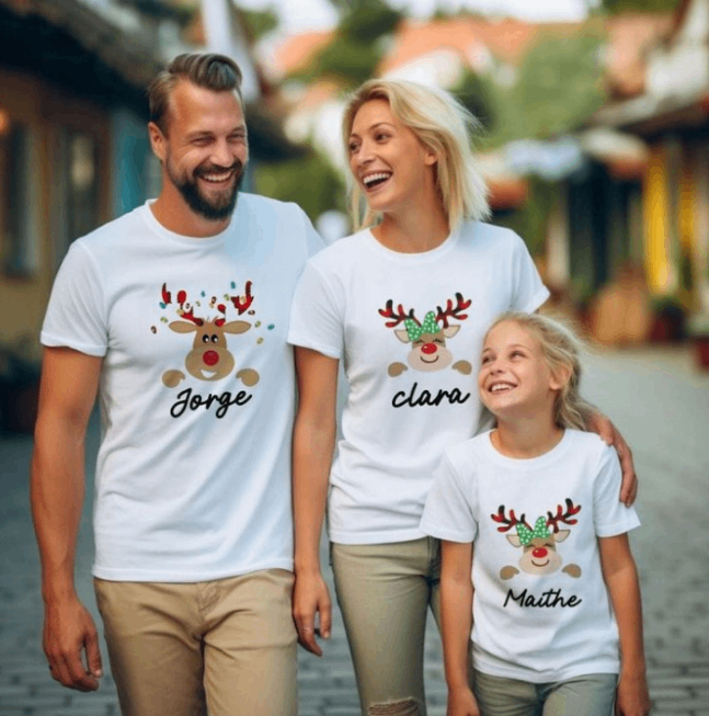 Préparez Noël avec style grâce à cet ensemble de vêtements et accessoires personnalisés. Parfait pour toute la famille, il inclut des t-shirts personnalisés Noël pour adultes, body pour bébé Noël une tasse personnalisé Offrez une touche unique à votre célébration avec des designs de rennes amusants et personnalisables pour chaque membre. Idéal pour créer des souvenirs inoubliables en famille et capturer des moments précieux. Un choix parfait pour des fêtes joyeuses et mémorables de noël !!